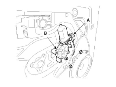 2. After disconnecting the connector (A), remove the power window motor (B).