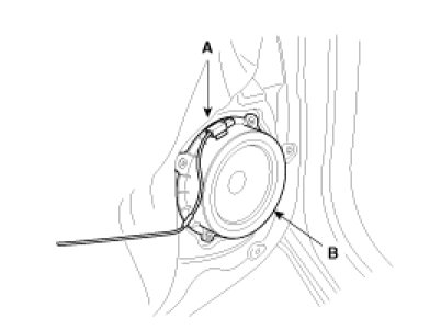 2. Drill out the rivets to remove the speaker (B) from the door module.