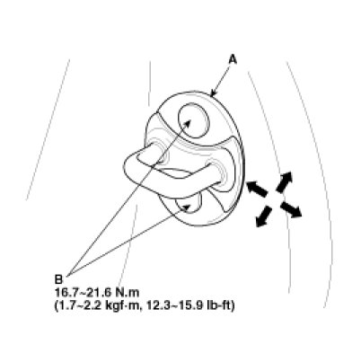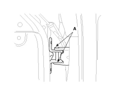 Make sure the door latches securely without slamming it. If necessary adjust the striker (A): The striker nuts are fixed. The striker can be fine adjusted up or down, and in or out.