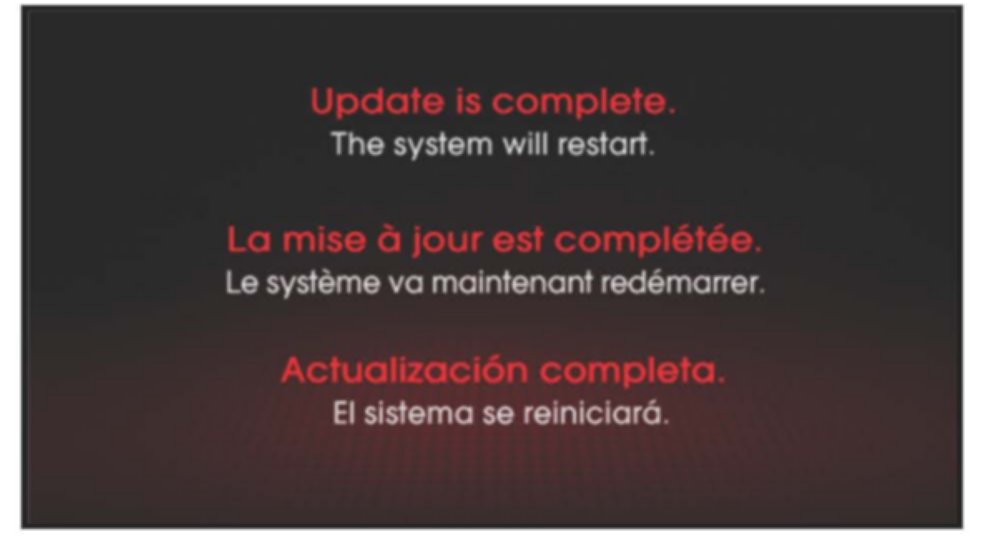 8. After updating is completed, the display shown above will appear for a few moments; then the UVO system will be rebooted again.