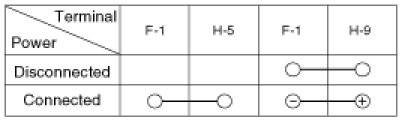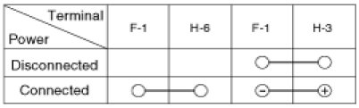 5. There should be no continuity between the No.1 terminals in the I/P-F and No.6 terminals in the I/P-H when power is disconnected.