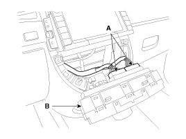 5. Disconnect the connectors(A), then remove the blower and A/C control panel(B).