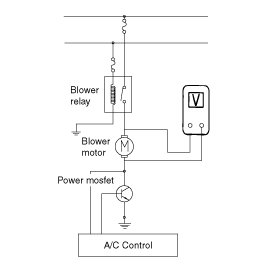 2. Manually operate the control switch and measure the voltage of blower motor.