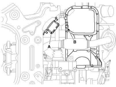 (1) Clean and install the oil drain plug (B) with a new gasket.