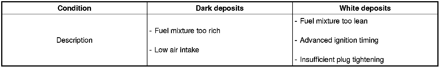 3. Check the spark plugs for the following :
