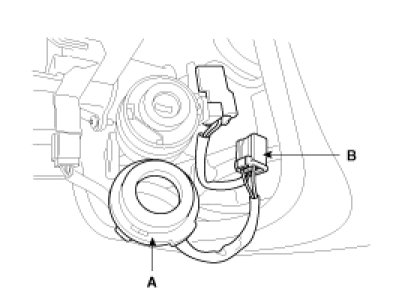 1. Disconnect the ignition switch connector (B) and key warning switch connector (A) from under the steering column.