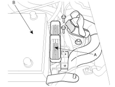 2. Install the transaxle lower mounting bolts (A-3ea, B-1ea).