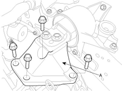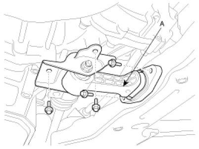 11. Remove the transaxle mounting support bracket bolts(A).