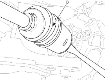 6. Disconnect the drive shafts (A,B) from the transaxle (refer to removal in DS group)