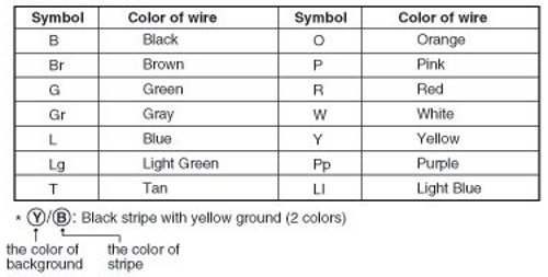 The following abbreviations are used to identify wire colors in the circuit schematics.
