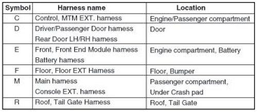 * It depends on vehicles, it is necessary to check the harness name symbol on the harness layouts for detailed symbol.