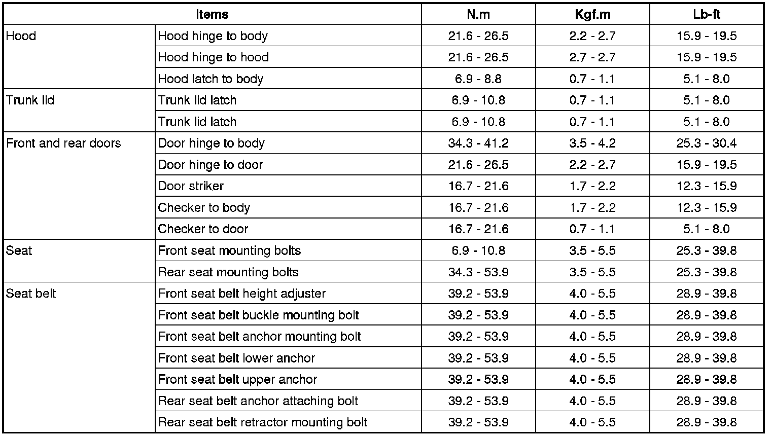 Tightening Torques