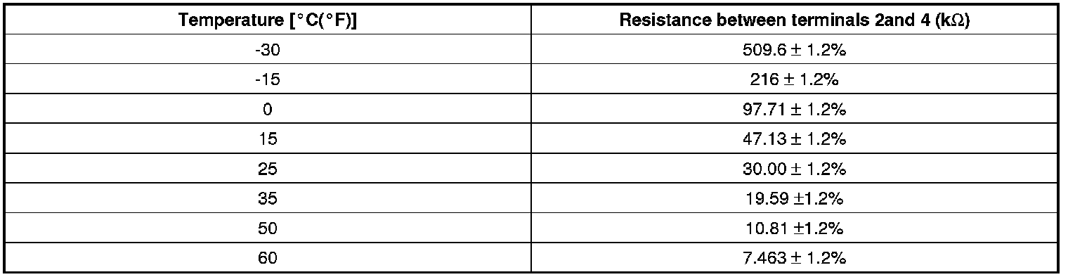 2. Blow air with changing temperature to the in car sensor air inlet. Measure sensor resistance between 2 and 4 terminals.