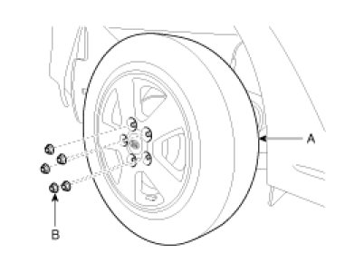1. Loosen the wheel nuts(B) slightly.