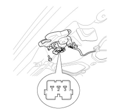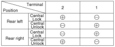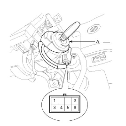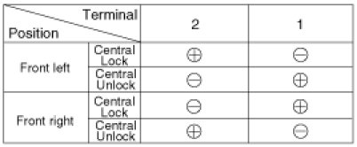 4. Check for continuity between the terminals in each switch position when inserting the key into the door according to the table.
