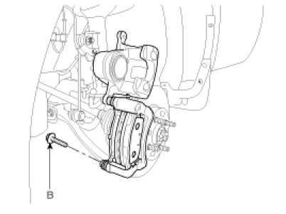 1. Loosen the guide rod bolt (B) and pivot the caliper up out of the way.