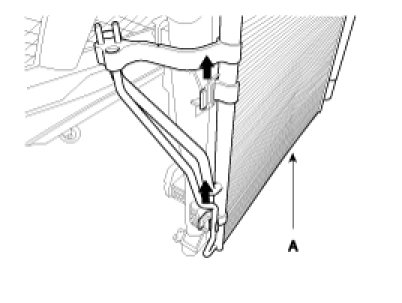 6. Remove the condenser (A) by lifting it up. Be careful not to damage the radiator and condenser fins when removing the condenser.