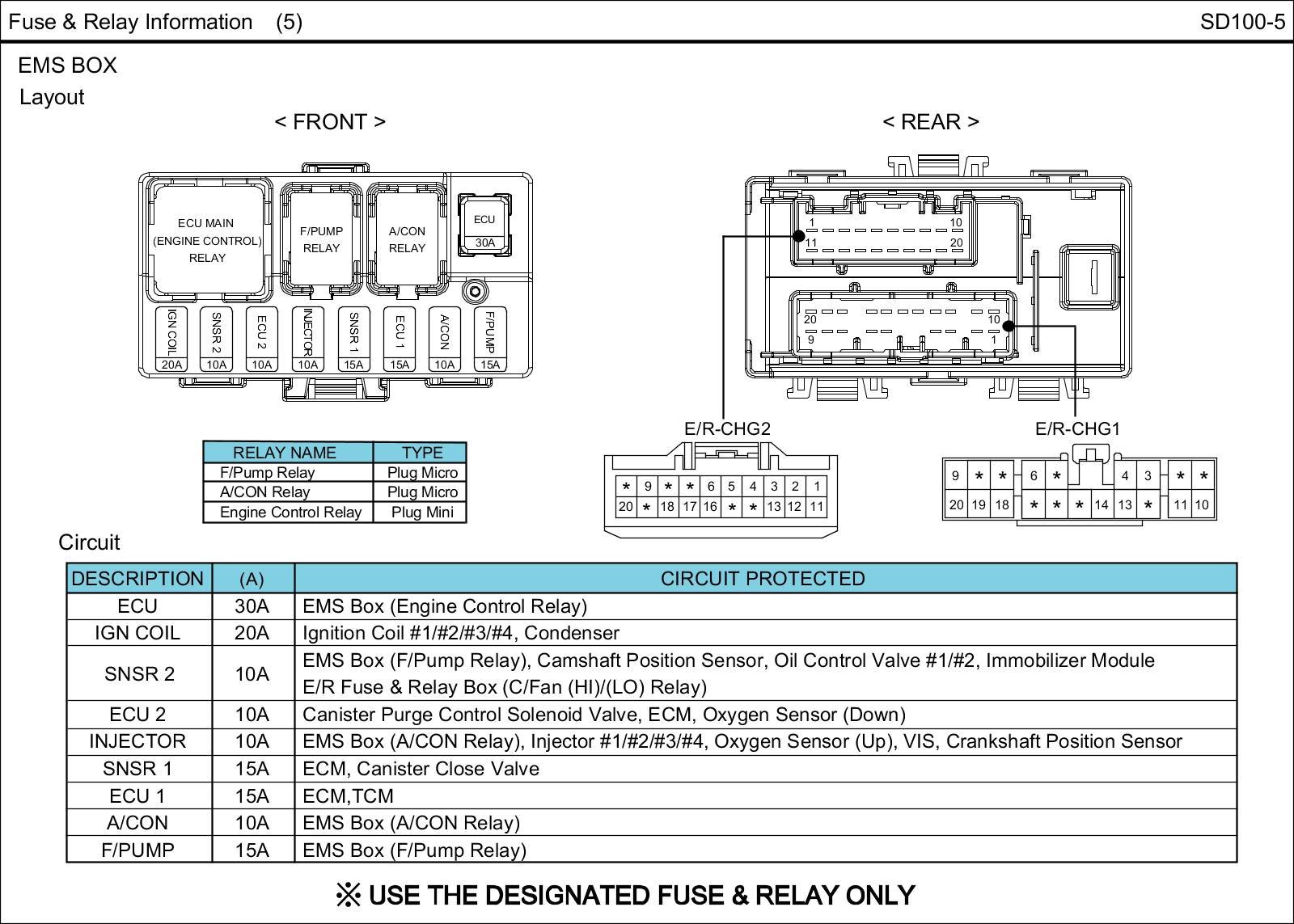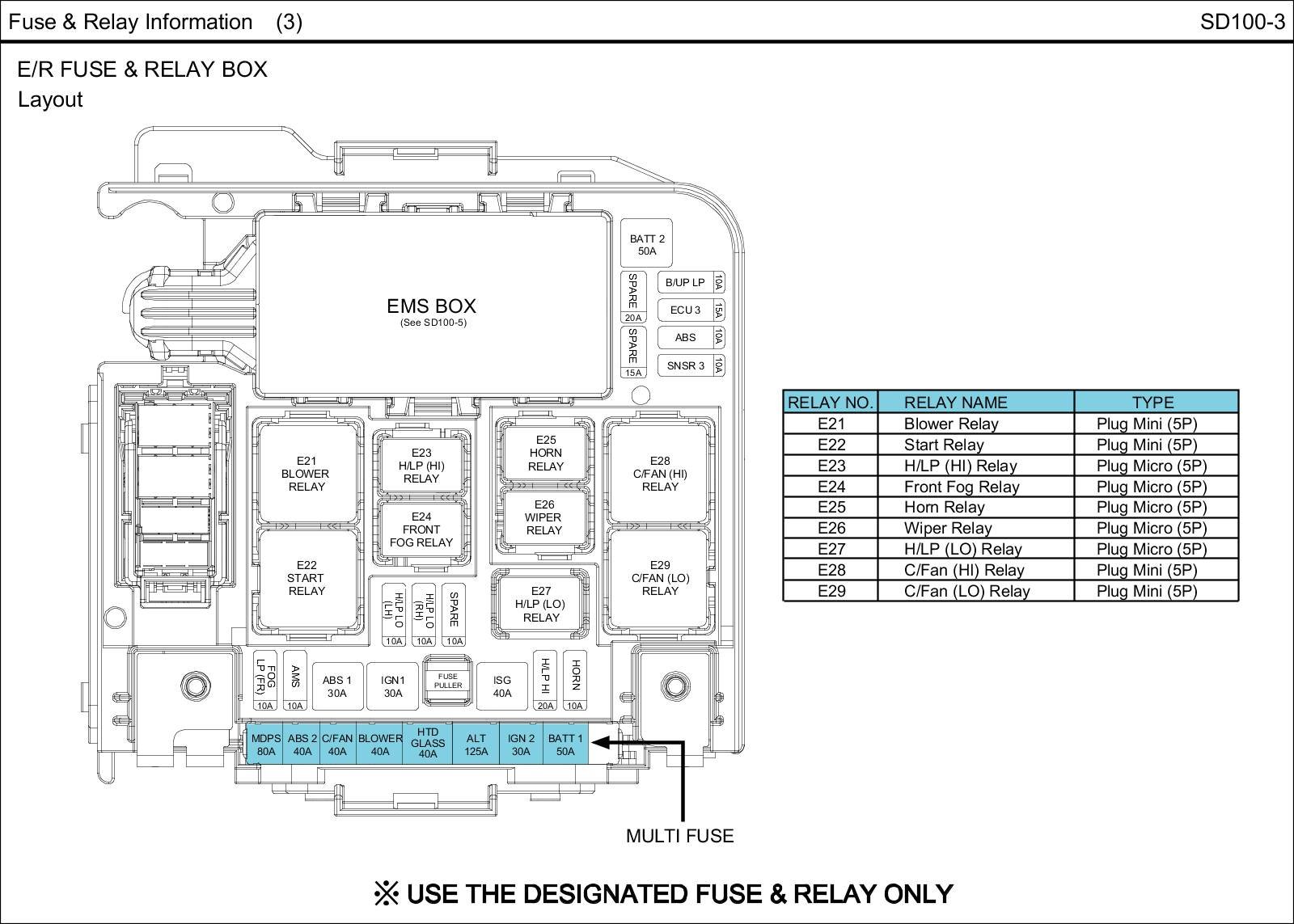 E/R Fuse & Relay Box Circuit Details: