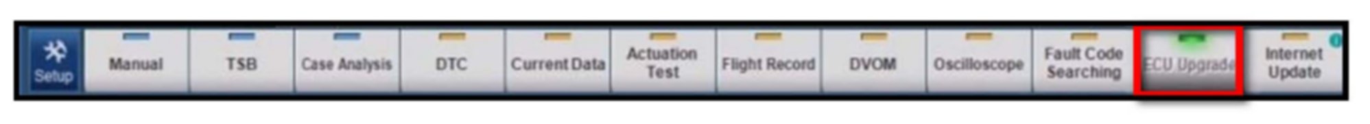 6. Once back at the GDS Main Screen select ECU Upgrade from the bottom right-hand corner. Next select Auto Mode and then Engine. Perform the ECM upgrade in accordance with normal GDS tool ECM upgrade procedures.