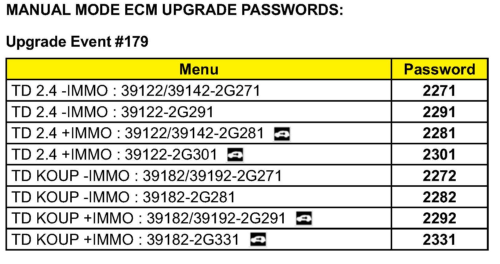 MANUAL MODE ECM UPGRADE PASSWORDS