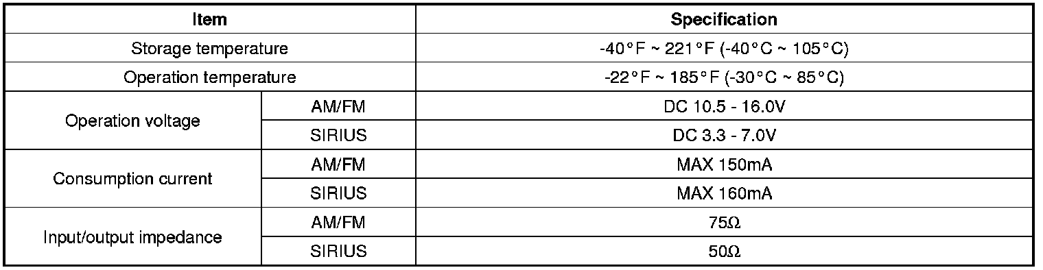 Specifications (Without SIRIUS)