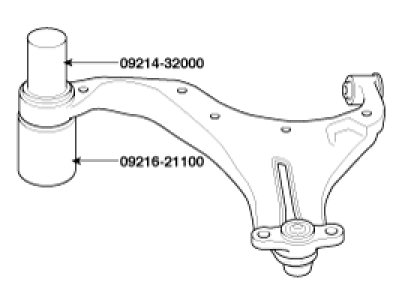 6. Using the special tools (09214-32000 & 09216-21100), install the busing on the lower arm. Remove old bushing on the lower arm.