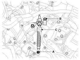 4. Remove the control cable (C) after removing the nut (A) and the bolt (B).