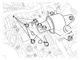 10. Remove the automatic transaxle support bracket mounting bolt (A).