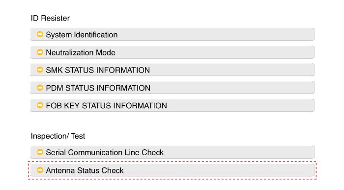 3. SMART KEY unit Output problem : antenna and switch output diagnosis
