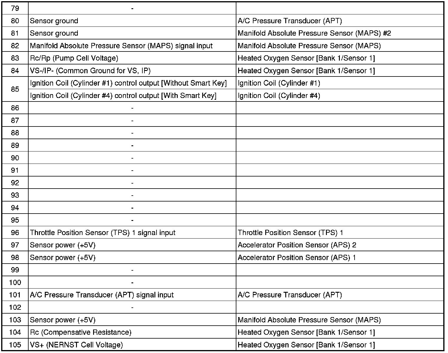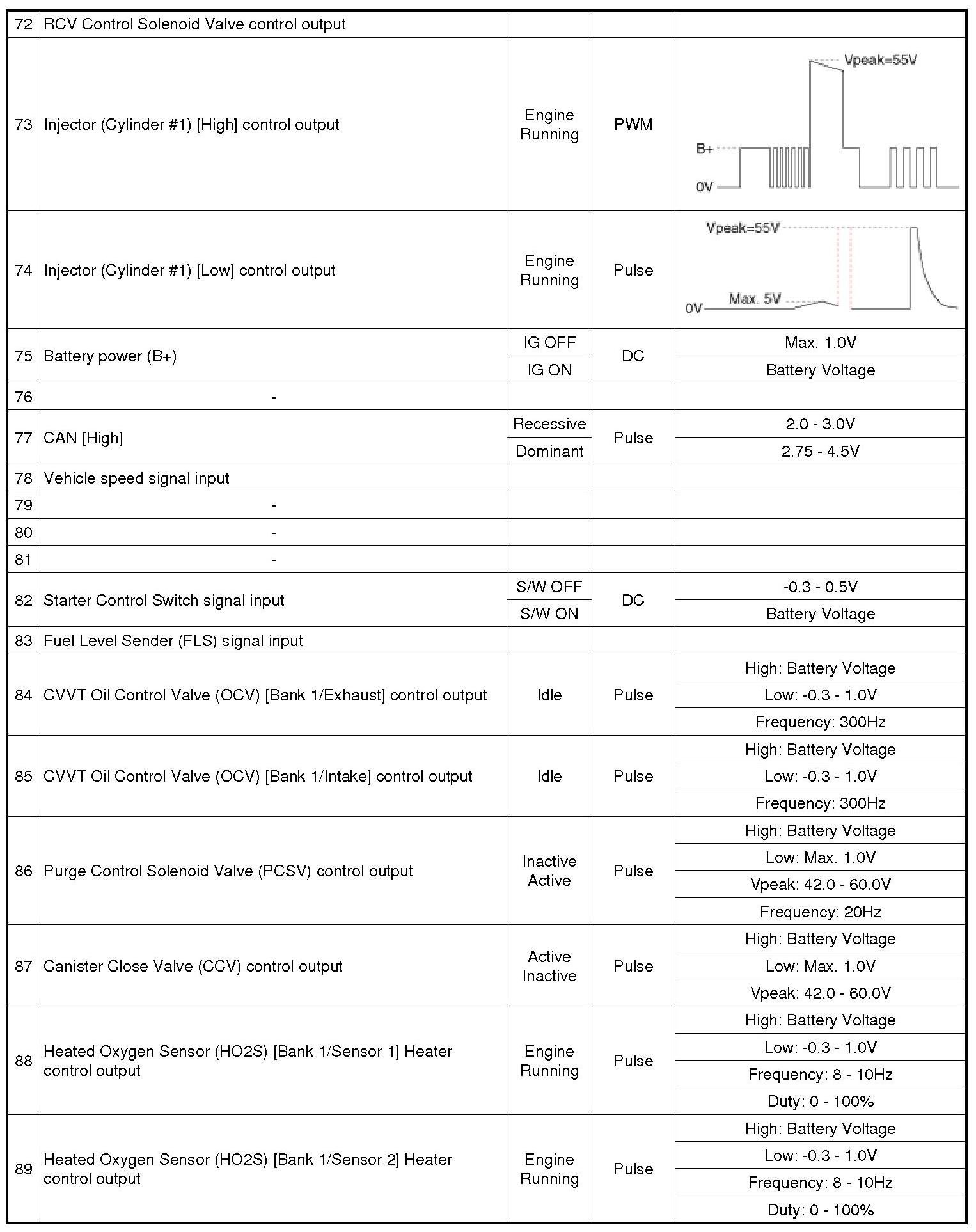 ECM Terminal And Input/Output signal