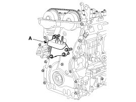 32. Remove the timing chain tensioner arm (A).