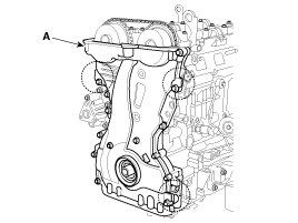 29. Remove the timing chain cover (A) by gently prying the portions between the cylinder head and cylinder block.