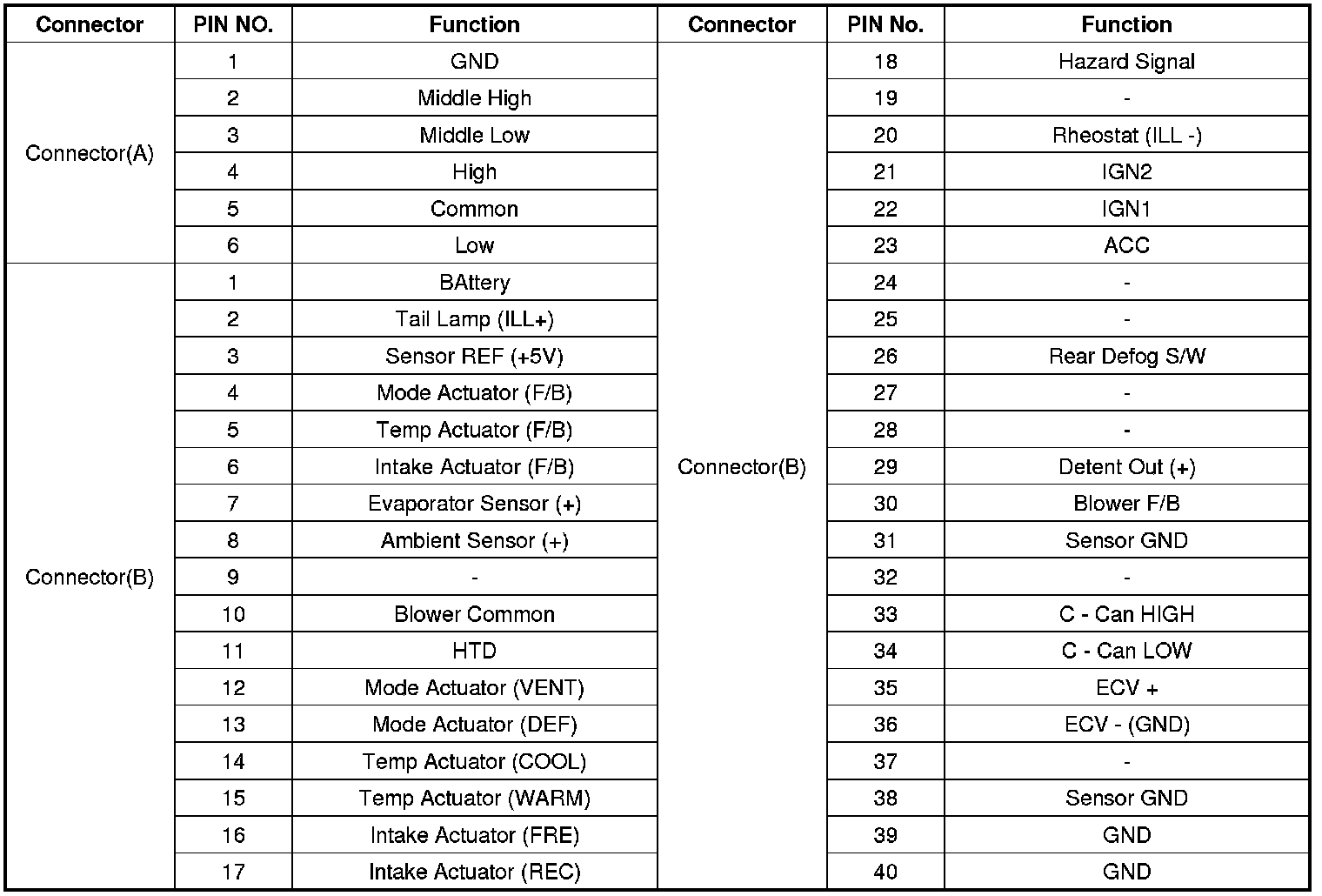 Connector pin function