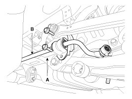 2. Loosen the nut and then remove the rear stabilizer link (B) from the rear lower arm (A).