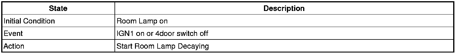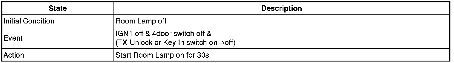 - 4 Door in closed IGN1 off & (Key in -> Key out): 30-second delay will be lights out.
