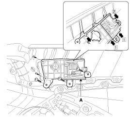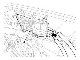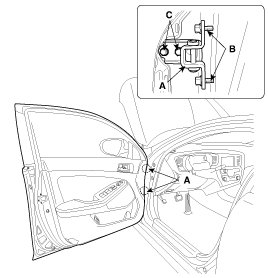 3. After loosening the door module mounting bolts, then remove the front door module (A).
