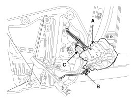 3. After loosening the mounting screws, then remove the power window motor (A).