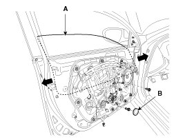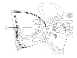 2. After loosening the mounting screws, then remove the front door trim (A).