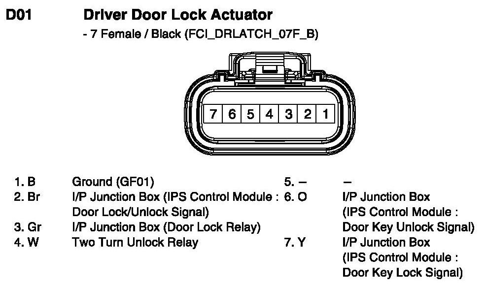 D01 Driver Door Lock Actuator: