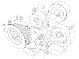 (2) Rotate the crankshaft pulley clockwise. Then the drive belt is removed.