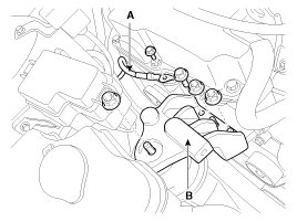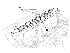 23. Install the wiring protector (B), and then connect the ignition coil connectors (A).