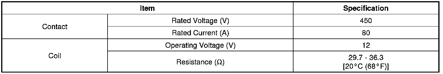 System Main Relay, Hybrid Drive: Specifications