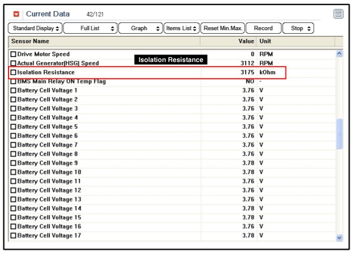 3. Check the isolation resistance in the GDS service data.