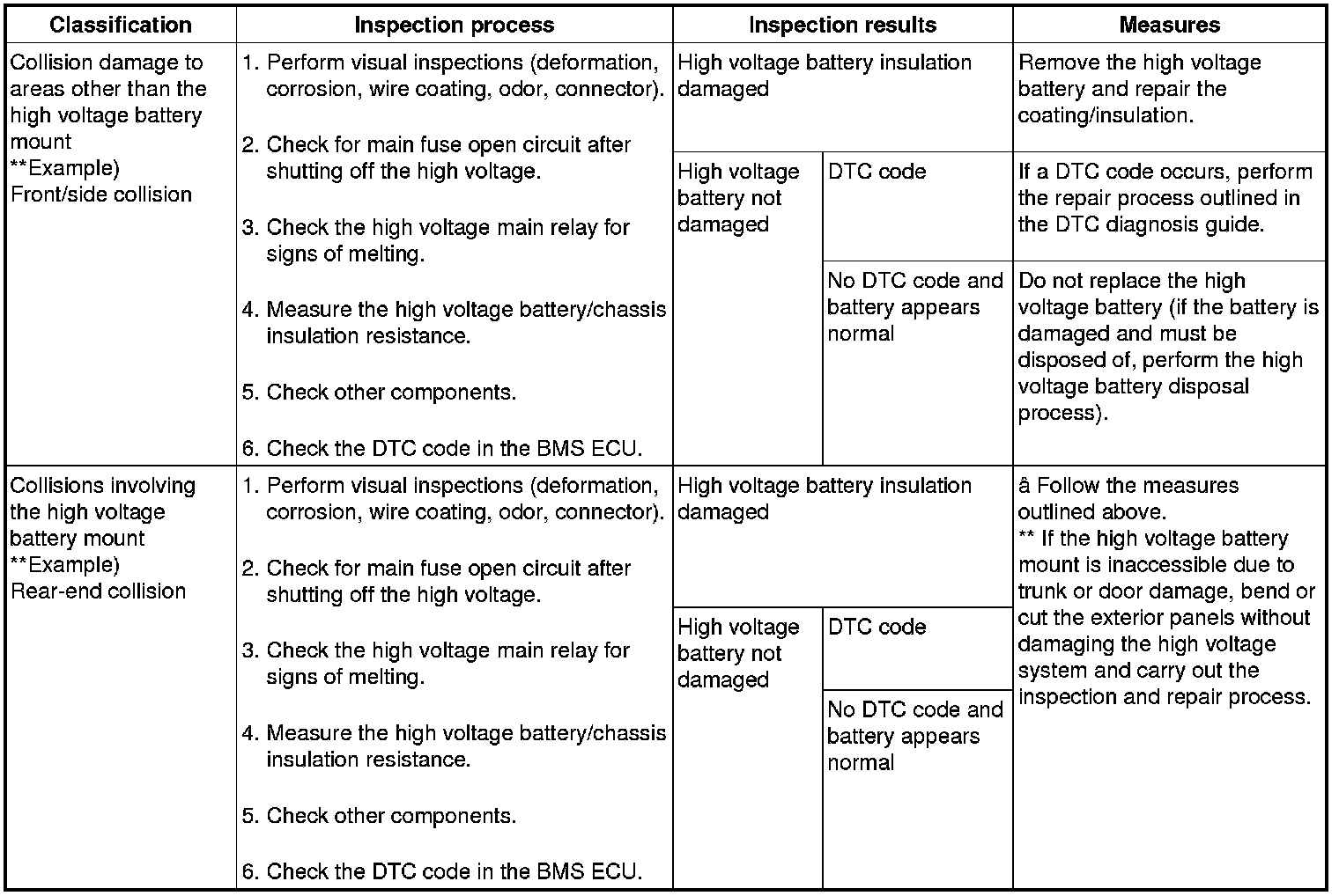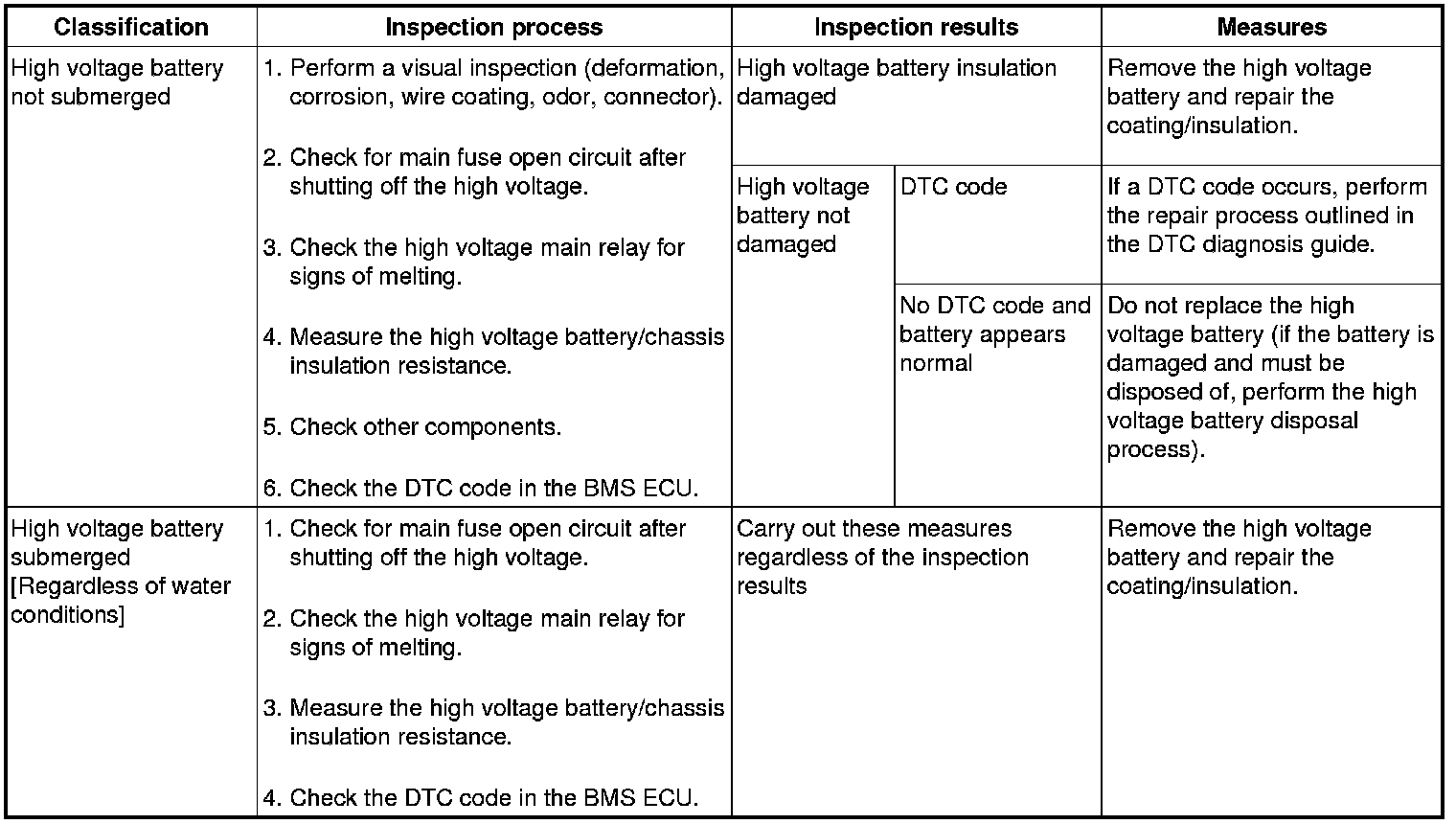 2. Defective high voltage battery system handling / Inspection