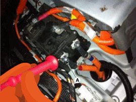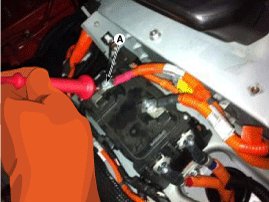 3. Remove the high voltage protection cover (A) from the power relay assembly (PRA).