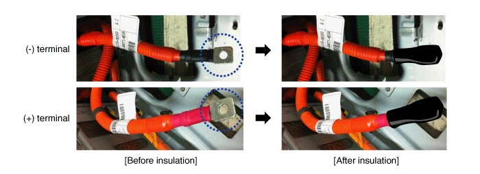 A. Place the insulation tape or rubber cap around the (+), (-) cable terminal to prevent short circuit to the battery pack.