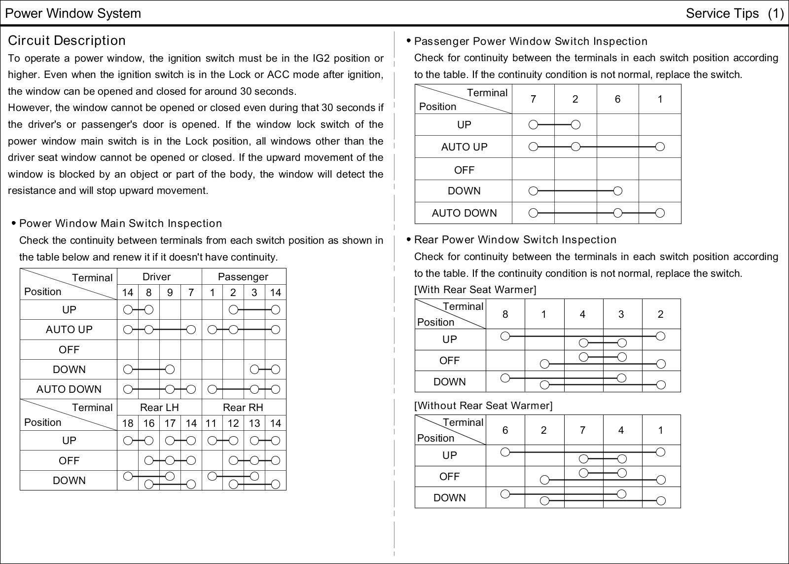 2. Length of window reversing (except holding the auto-up switch)