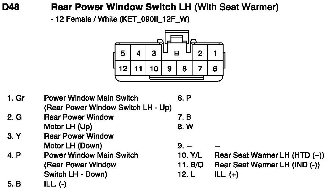 D48 Rear Power Window Switch LH (With Seat Warmer):