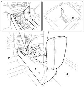 7. After loosening the mounting screws and bolts, then remove the floor console assembly (A).