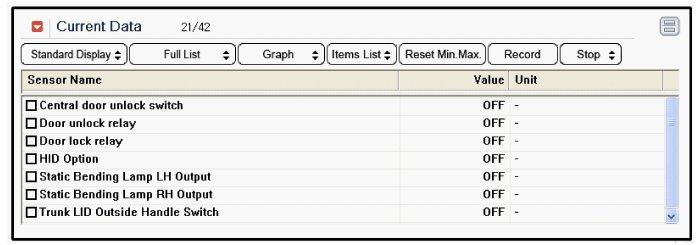 4. Select "Current data", if you will check current data of power door lock system. It provides input/output status of SJB.